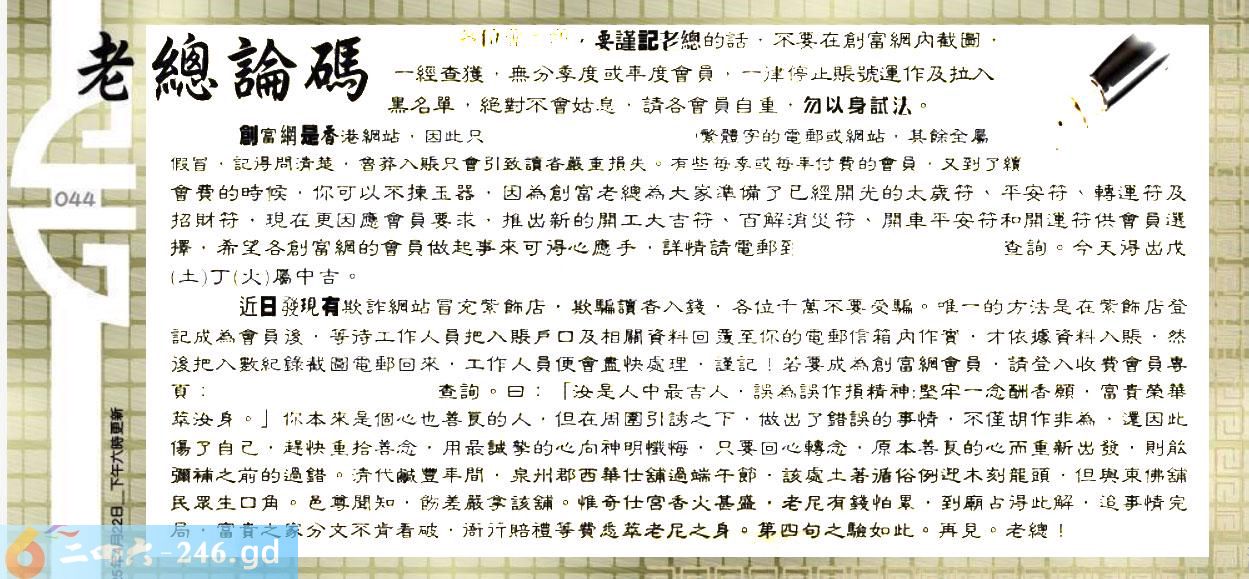 044期:六合皇金句/老总论码/萧公子/林大师/五行夺码/老总信箱截图