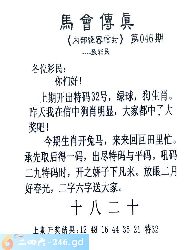 046期:首发推荐:≮馬會傳眞≯→(香港正版)