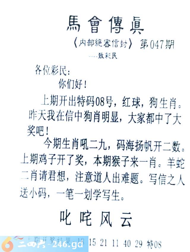 047期:首发推荐:≮馬會傳眞≯→(香港正版)