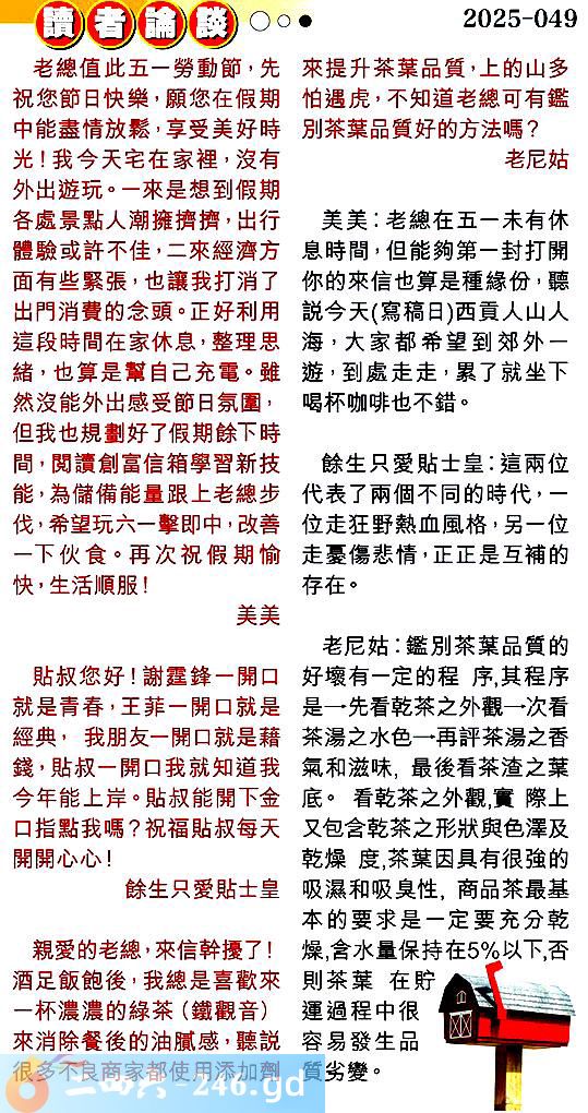 〖美美〗:老總在五一未有休息時間,但能夠第一封打開你的來信也算是種緣份,聽說今天(寫稿日)西貢人山人海,大家都希望到郊外一遊,到處走走,累了就坐下喝杯咖啡也不錯。