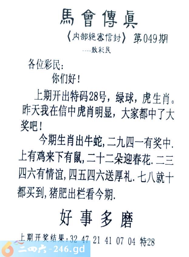 049期:首发推荐:≮馬會傳眞≯→(香港正版)