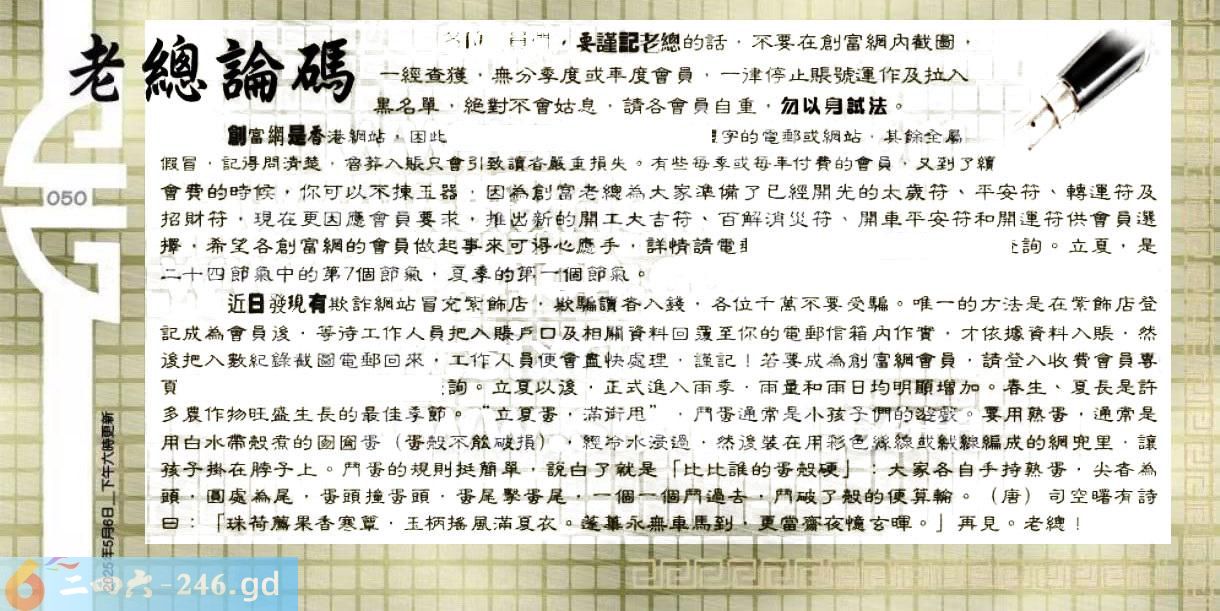 050期:六合皇金句/老总论码/萧公子/林大师/五行夺码/老总信箱截图