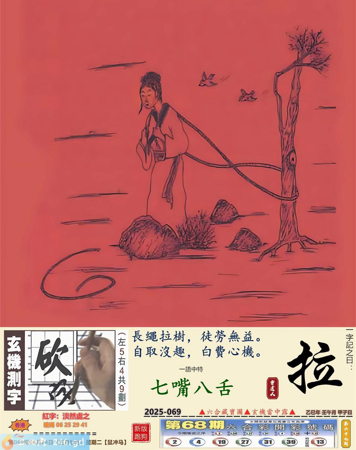 2025年6月24日069期马(戊午)(海中金) 069期:老版跑狗玄機一字記之曰:【和】 詩云:生活空間更開懷一團和氣好世界 水乳交融,氣氛和諧,生活空間更開懷; 互相尊重,有好無壞,一團和氣好世界。 玄機測字《挾》 密圖詩:一行文字二十四 《記》:-七尺男兒當英雄 特碼大小單雙句:左右逢源一高人 今期必中:馬腾 069期:特碼歇后語 怪味豆-----酸甜苦辣咸样样俱全 069期正版四字梅花诗:不三不四。 069期火车头:烧伤马。诗:马死兔伤,二九出特今期来。 069期香港第一手欲钱料:三位一体? 069期曾道人说:“椅子?” 069期另版四字梅花:美丽神话。 069期香港第一手欲钱料:欲钱找2005年最后一期的开奖记录。 069期曾道人说:“恭祝大陆各位彩民在2005年的最后一期发大财”? 069期:二字經:朝陽 069期:蛋糕是特码 069期:智力金壤:不求甚解 069期:信箱紅字:【淡然處之】 069期:【暗碼:06-25-29-41】 069期:一語中特:【七嘴八舌】 發財玄機圖:耳聰目明靈活神秘圖中明蛇狗紅藍 069期:藏寳圖 新:心源不受壹尘侵 老:坠素翻红各自伤 禁:狗禁:3尾玄機字《地》 2025年069期【生活幽默】版 〖專业捉奸〗 有個人開了一間專業捉奸的公司五年了,生意一直很好。公司的廣告標語是:如果你老公老婆或男女朋友突然玩失踪,想知道她的位置或他和誰在鬼混可與我聯系。定位4000,捉奸8000,連捉帶揍10000,殺人滅口面談!我們的口號就三個字“穩,準,狠”專業捉奸5年,捉奸行業裹的龍頭團隊,一直被模仿,從未被超越!所捉的奸夫淫婦加起來可繞地球三圈!根本停不下來……專業品質,值得信賴!正規經營,可開發票!需要者,私聊。