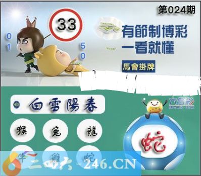 2025年024期正版彩图挂:33 爆:蛇 挂牌成语:白雪阳春 挂牌出肖:猴兔龙牛鸡蛇