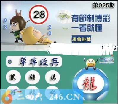 2025年025期正版彩图挂:28 爆:龙 挂牌成语:草率收兵 挂牌出肖:鼠猪虎鸡龙狗