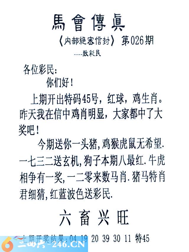 026期:首发推荐:≮馬會傳眞≯→(香港正版)