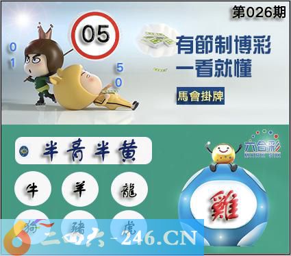 026期正版彩图挂:05 爆:鸡 挂牌成语:半青半黄 挂牌出肖:牛羊龙狗猪虎