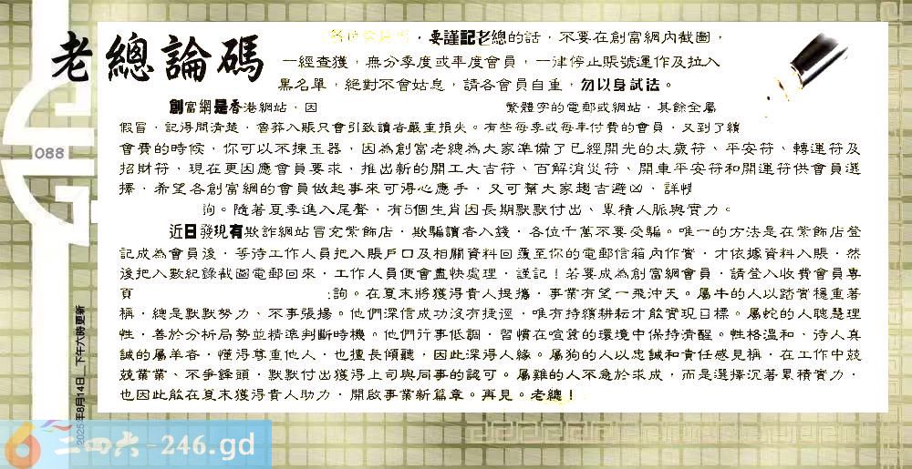 088期:六合皇金句/老总论码/萧公子/林大师/五行夺码/老总信箱截图