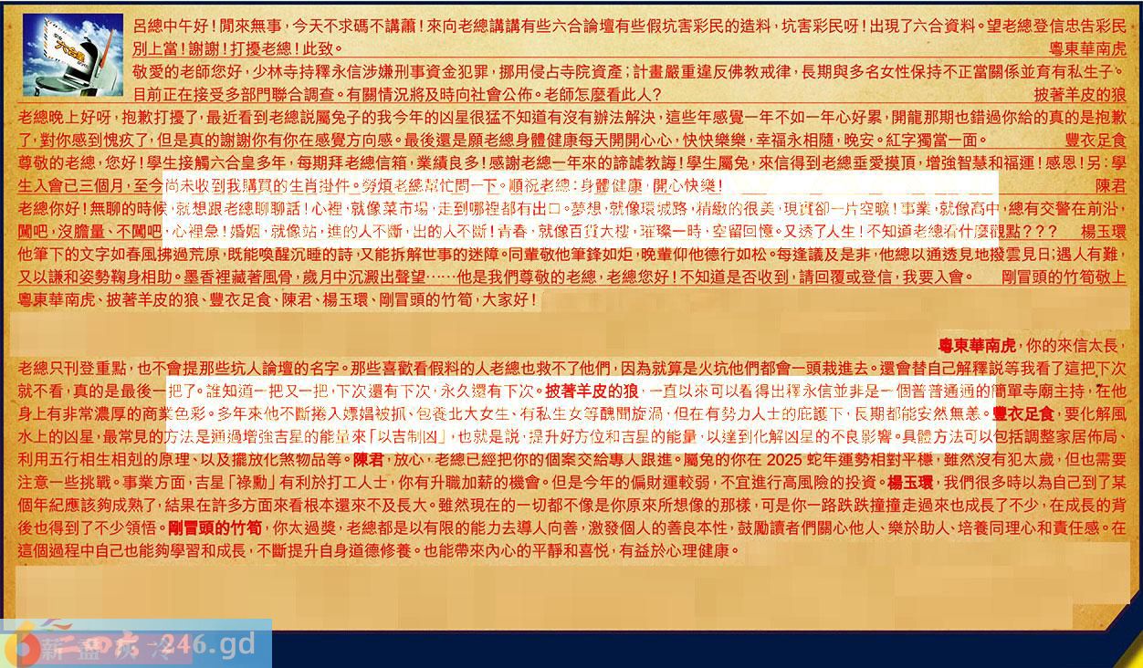 【1】.呂總中午好!閒來無事,今天不求碼不講蕭!來向老總講講有些六合論壇有些假坑害彩民的造料,坑害彩民呀!出現了六合資料。望老總登信忠告彩民別上當!謝謝!打擾老總!此致。粤東華南虎