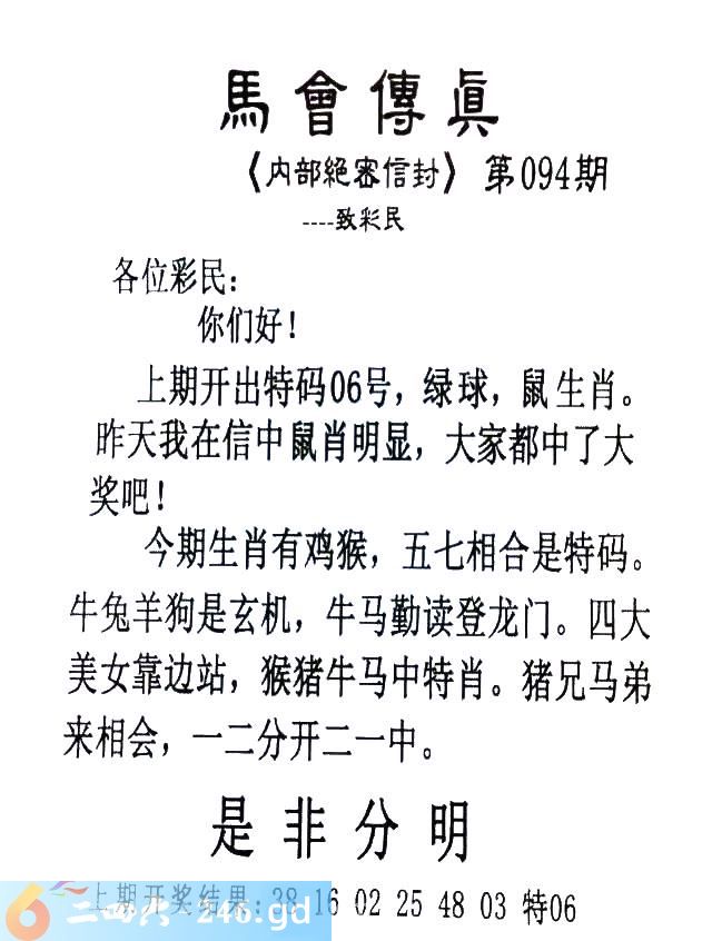 094期:首发推荐:≮馬會傳眞≯→(香港正版)