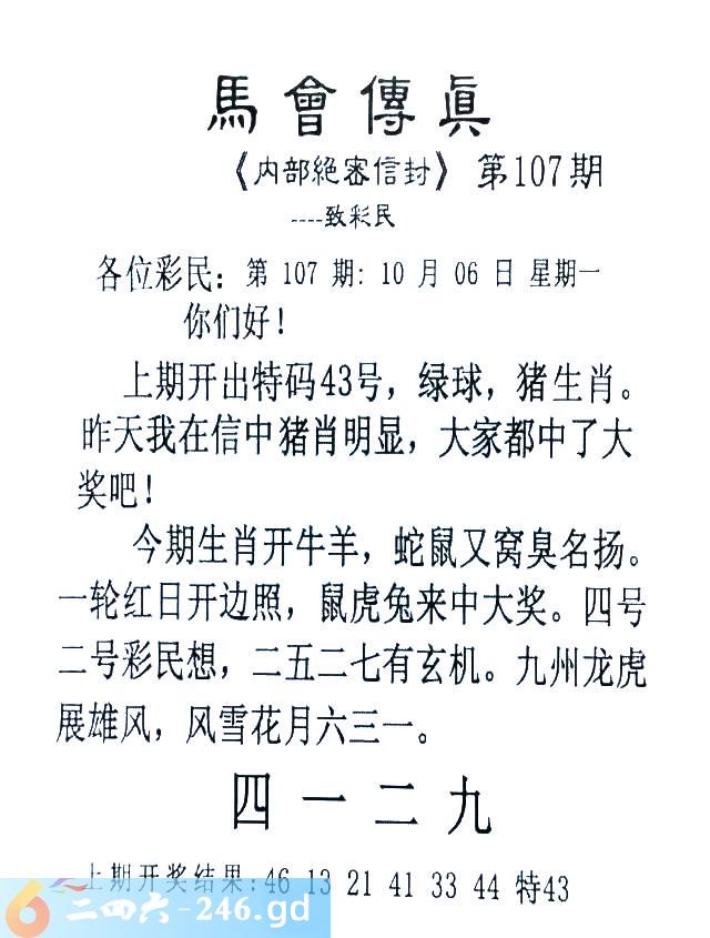 107期:首发推荐:≮馬會傳眞≯→(香港正版)