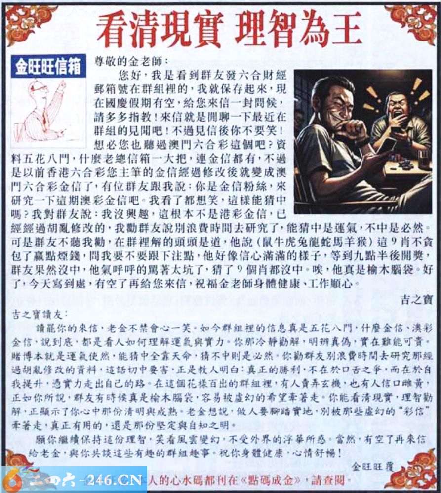 029期:金旺旺信箱彩民推荐→→《看清現實 理智為王》