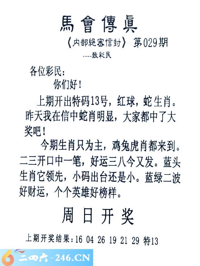 029期:首发推荐:≮馬會傳眞≯→(香港正版)