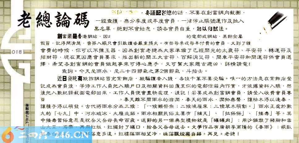 018期:六合皇金句/老总论码/萧公子/林大师/五行夺码/老总信箱截图