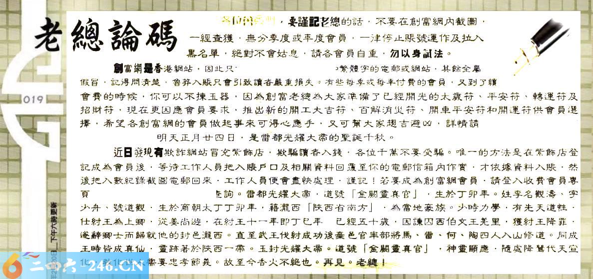 019期:六合皇金句/老总论码/萧公子/林大师/五行夺码/老总信箱截图