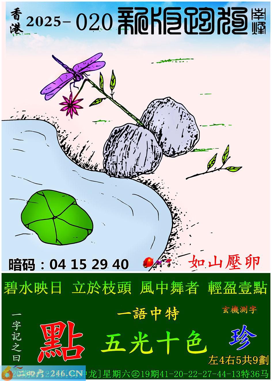 020期跑狗一字記之曰:【點】 碧水映日,立於枝頭。 風中舞者,輕盈壹點。