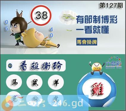 127期开奖时间2025年12月06(星期六)晚9:30开(农历十月十七鸡冲兔) 生肖属性:己酉日;五行属性:土;地支六冲:鸡冲兔,无羊;六合:龙;三合:牛蛇。空亡肖:虎狗。 六合不出:鸡虎羊;三合不出:猴猪牛;应开生肖:龙羊猪马猴。防:鼠兔 开奖日必开生肖鸡日:龙鼠猪虎狗猴 开奖日日柱对应五行己酉日:水木火 开奖日必开生肖己酉:蛇虎马鸡猴牛 上期兔,必开:龙马羊蛇鼠牛兔 《127期》《《香港掛牌之全篇》》 127期正版彩图挂:38爆:鸡挂牌成语:看杀卫玠挂牌出肖:马鼠羊兔狗虎 [释义]比喻为群众所仰慕的人。 127期另版香港马会挂牌:17鸡 127期马会挂牌34射1148 127期正版数码挂牌:26射:0712壹句真言:玉女殷勤献紫薇(23568) 127期蓝天玄挂牌:02猪 127期四柱《小童上山遇老虎》 127期藏寶圖新:好遣文星守躔次老:毒虬相视振金环禁:猴禁:8尾玄機字:《竺》财爷送:“何必求神仙” 127期跑狗:【阻】袋鼠輕蹦,絨球難阻。隔障難阻,戲樂無窮。玄機測字:《淺》 127期香港关门联:虎背熊腰暮色浓,风流一生天生我。解[眉][2837] 127期香港开门联:生平地上却上天,本期要钱看蓝绿。解[泥][1603] 127期另香港关门联:蛇游楼台跟黄牛,有木有土大家中解[视][49072] 127期另香港开门联:霜叶红于二月花,沧海逐浪乐陶陶解[茧][82465] 127期内部万花来料:万花开在母命属鼠蛇先终,红绿色彩尽显猴藏鸡居 127期台湾玄门挂牌:[三心二意][187] 127期挂历诗:九字独取二来合,二八丁配五不满。 127期火车头:烧伤马。诗:牛死猴伤,一六得二开三一。 127期火烧图解:火烧“虎”。诗:十八想一得三六,单码二九有正道。 127期无字天书:九五分合今期来,没有四脚会走路。虎26 127期最老版无字天书:平生难得糊涂进,醉生梦死灌三杯。龙20 127期九宫禁肖:鼠 127期必中人物:孙绰 127期二字经:色气 127期六合信箱紅字:昂首伸眉暗码:15182142 127期一語中特:四方八面 127期挂牌绝杀料/挂牌绝杀:猴 127期正版黄大仙射箭图:18射1529 127期另版黄大仙射箭图:09射3846 127期香港牌:[四海为家][367] 127期内部运程曰:好梦成真。配密码:{135} 127期香港信封挂牌:倒骑毛驴看墨镜(午时上下)加7059 127期波段预测:10----2025--49 127期特码大小单双句:小童上山遇老虎解?? 127期特码大小单双句:伏魔除妖西天路解?? 127期铁算盘:故人吏京剧(狗追人跑)开:? 127期香港版《香港六合天书挂牌》天书:三前五后退三步,四走六追无来找。天码:08、33、15、37、46、09、16、11 127期(香港版)六合对联诗:横联:开门放狗上联:胜算二三看中九下联:抛开八七有四五解:放。密码:56987 127期正版马会大门口挂牌一句话:本期三四比拼二神勇【挂21送44】开 127期另类马会大门口挂牌一句话:牛猪龙兔行千里【马会送06】开 127期香港生活开门联:生来水中是大王,敢于上天告猴王解[天][45891] 127期香港生活关门联:二后来三特码灵,一五加得三二合解[加][56781]