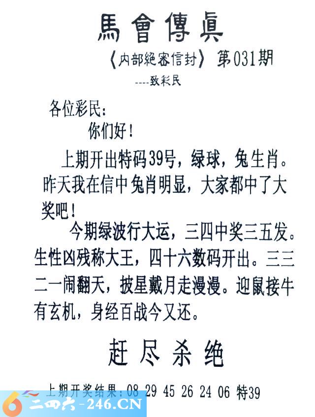 031期:首发推荐:≮馬會傳眞≯→(香港正版)