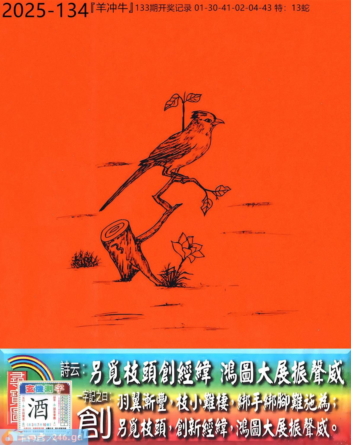 2025年12月28日134期牛(乙丑)(路旁土) 134期:老版跑狗玄機一字記之曰:【創】 詩云:另覓枝頭創經緯鴻圖大展振聲威 羽翼漸豐,枝小難棲,綁手綁腳難施為; 另覓枝頭,創新經緯,鴻圖大展振聲威。 玄機測字:《酒》 134期:信箱紅字:【逸興橫飛】 134期:【暗碼:02-31-33-41】 134期:一語中特:【九死一生】 密圖詩:時未運轉九十圈 《記》:生個兒子叫小寶 特碼大小單雙句:五杯水酒敬兄長 今期必中:趙雲 134期:特碼歇后語 年三十夜拨算盘-----满打满算 134期正版四字梅花诗:浴火重生。 134期火车头:烧伤猪。诗:鼠死龙伤,单二加九更出来。 134期香港第一手欲钱料:十指连心。 134期曾道人说:“三脚架?” 134期另版四字梅花诗:国际形象。 134期香港第一手欲钱料:欲钱看白天见不到的动物。 134期曾道人说:“男人三十工作时最爱做哪件事”? 134期:二字經:去世 134期:婊子是特码 134期:智力金壤:鹏程万里 134期:信箱紅字:【逸興橫飛】 134期:【暗碼:02-31-33-41】 134期:一語中特:【九死一生】 玄機發財圖:圖中明豬紅藍 134期:藏寳圖 新:彩川紫岫洗诗愁 老:自许高材老更刚 禁:狗禁:3尾玄机字《穿》 2025年134期【生活幽默】版 〖山間小路〗 長期住在城市的張三,一天回鄉下探親,在山間小路開車,正當他悠哉欣赏美麗風景時,突然迎面開來的貨車司機摇下窗户大喊一聲:"猪!" 張三愣了一下,越想越氣,也摇下車窗大:"你才是猪!" 剛完,他便迎頭撞上一群過馬路的猪。