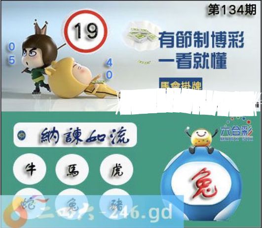 2025年134期正版彩图挂:19 爆:兔 挂牌成语:纳谏如流 挂牌出肖:牛马虎蛇兔猪