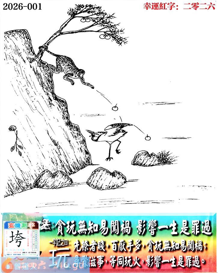 001期老版跑狗一字記之曰:【玩】 詩雲:貪玩無知易闖禍,影響一生是罪過。