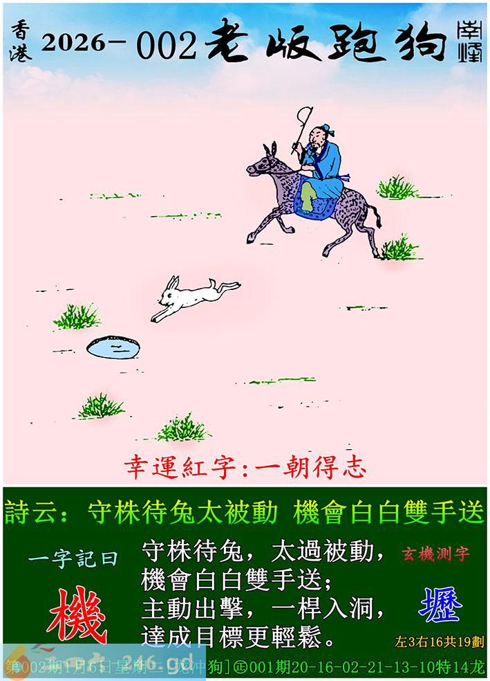 002期老版跑狗一字记之曰:【机】