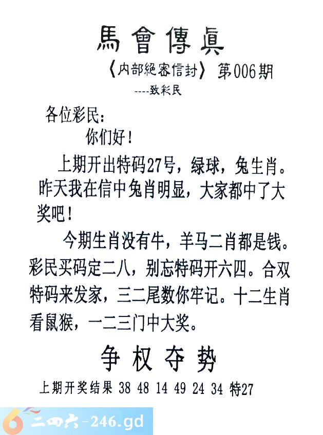006期:首发推荐:≮馬會傳眞≯→(香港正版)