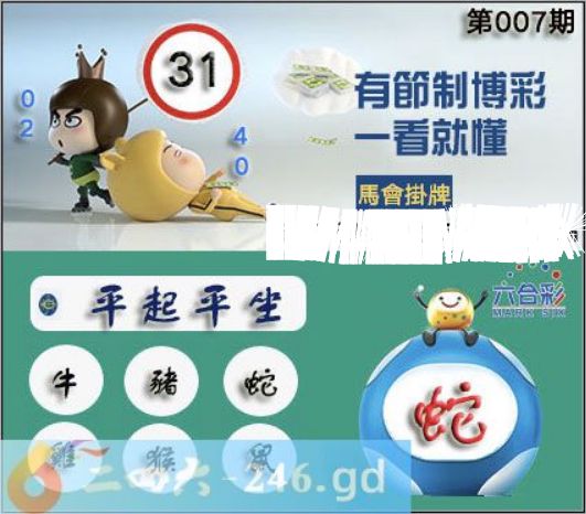 2026年007期正版彩图挂:31 爆:蛇 挂牌成语:平起平坐 挂牌出肖:牛猪蛇鸡猴鼠