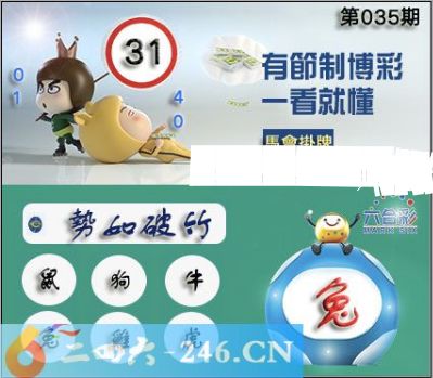 035期正版彩图挂:31爆:兔挂牌成语:势如破竹挂牌出肖:鼠狗牛兔鸡虎正版数码挂牌:15射:3505壹句真言:吟沿绿岛时逢鹤(24567)四柱《身穿灰灰夜半出》开奖时间:03月29日(星期六.鸡冲兔)21:30分搅珠!