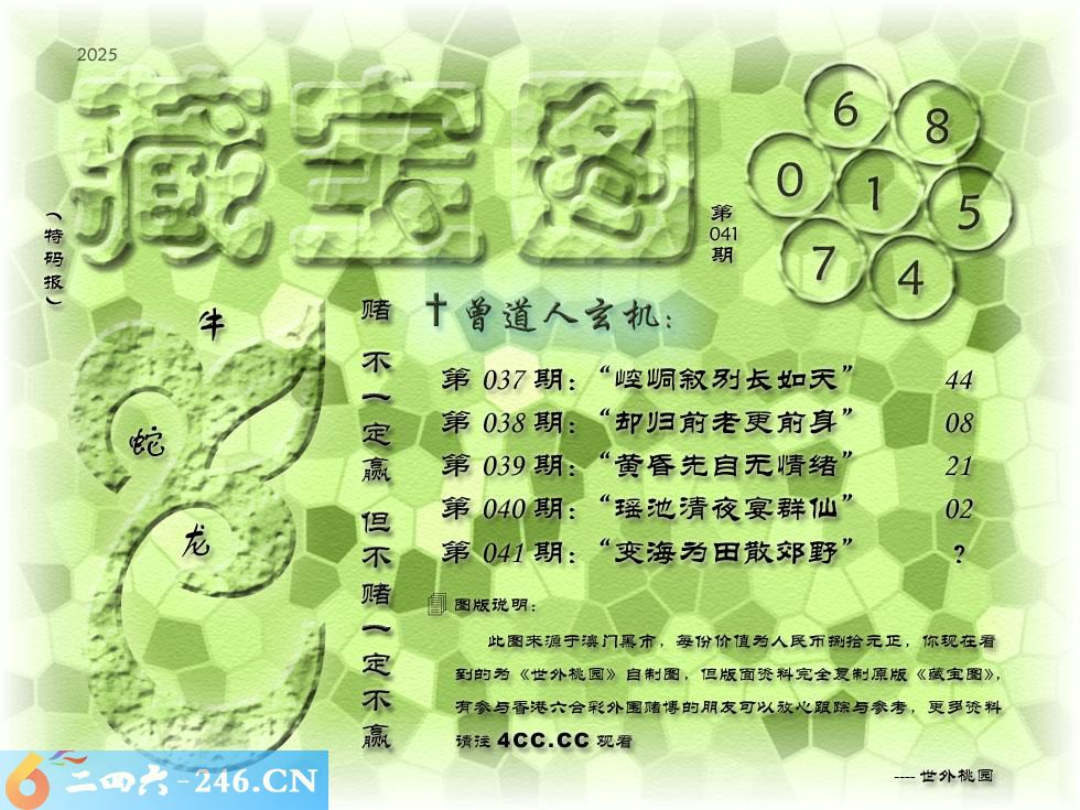 041期藏寶圖 新:变海为田散郊野 老:烟中列岫青无数 禁:猴 禁:9尾 玄機字:《济》
