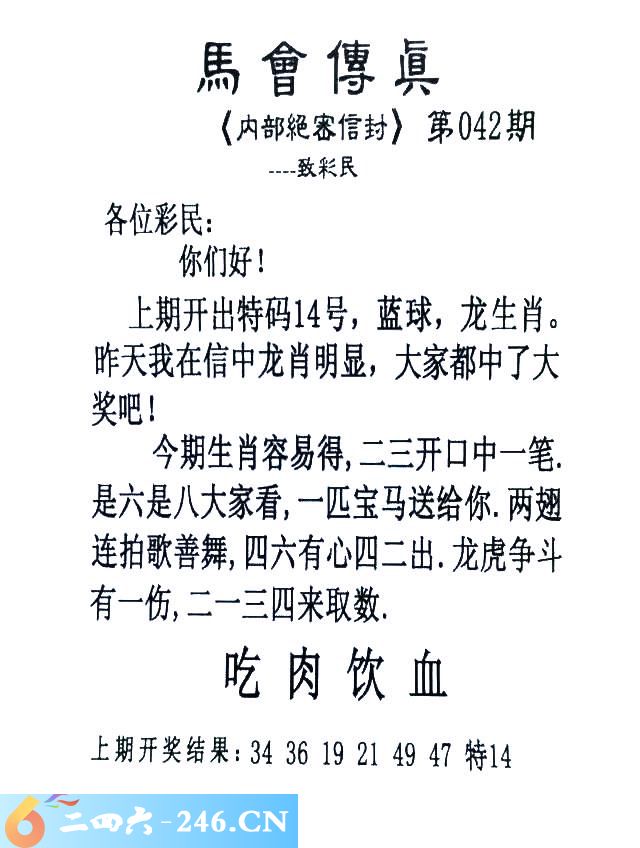 042期:首发推荐:≮馬會傳眞≯→(香港正版)