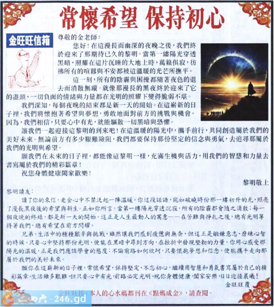 052期:金旺旺信箱彩民推荐→→《常懷希望 保持初心》