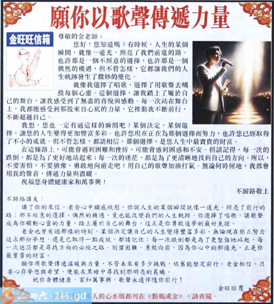 058期:金旺旺信箱彩民推荐→→《願你以歌聲傳遞力量》