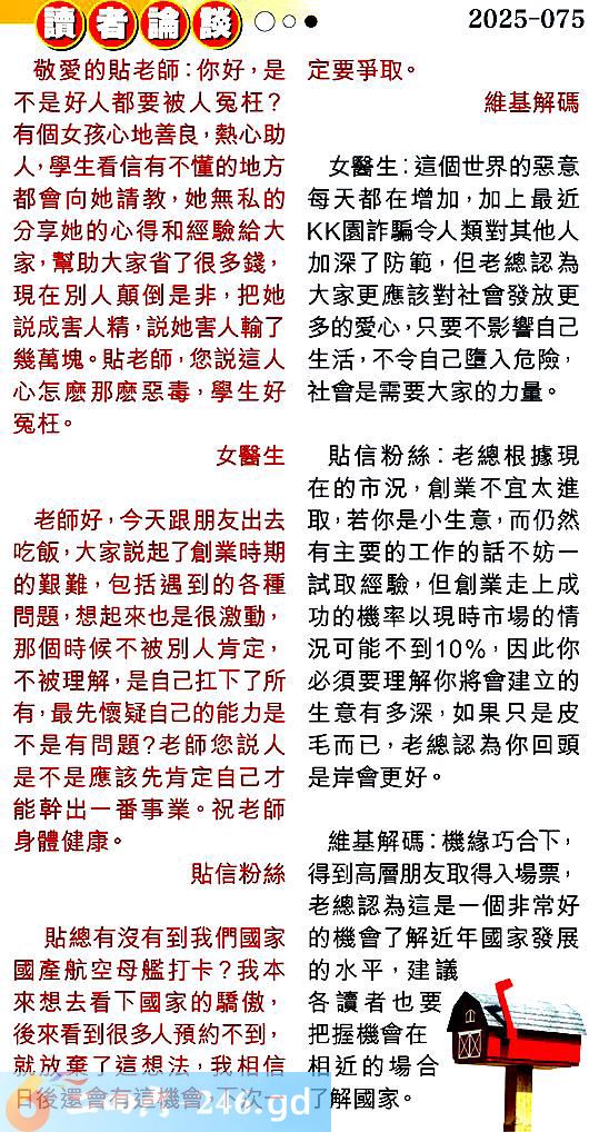 第零七五期讀者論談