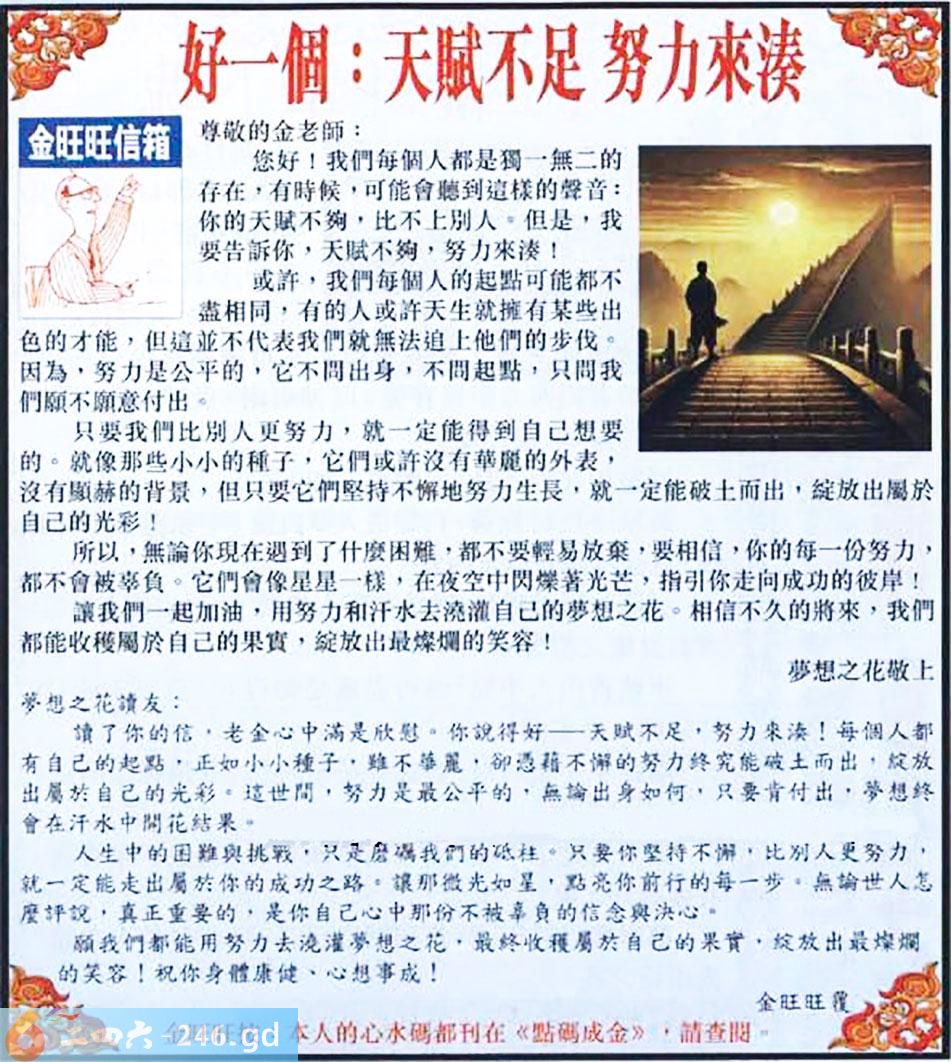 084期:金旺旺信箱彩民推荐→→《好一個:天賦不足 努力來湊》