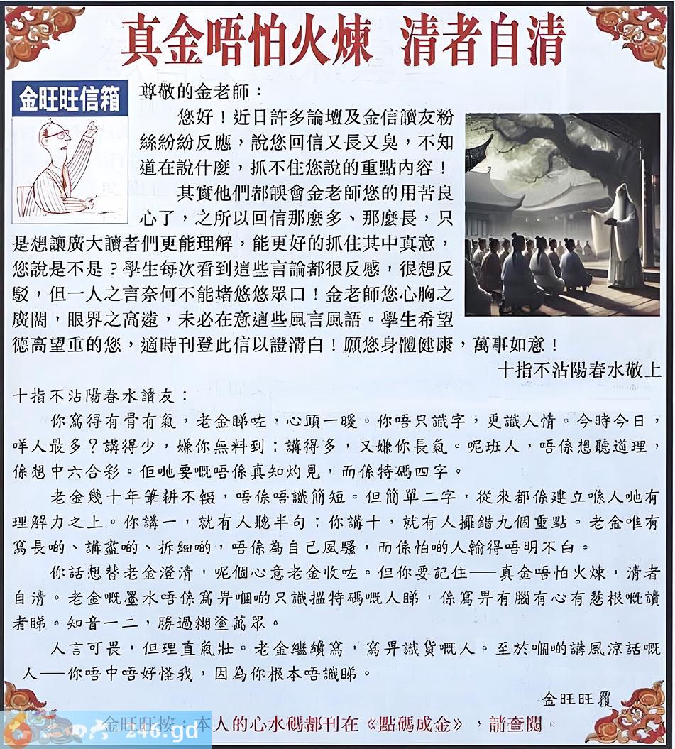 086期:金旺旺信箱彩民推荐→→《真金唔怕火煉 清者自清》