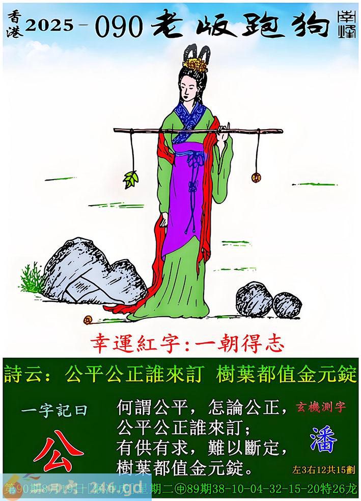 090期老版跑狗一字記之曰:【公】 詩雲:公平公正誰來訂,樹葉都值金元錠。