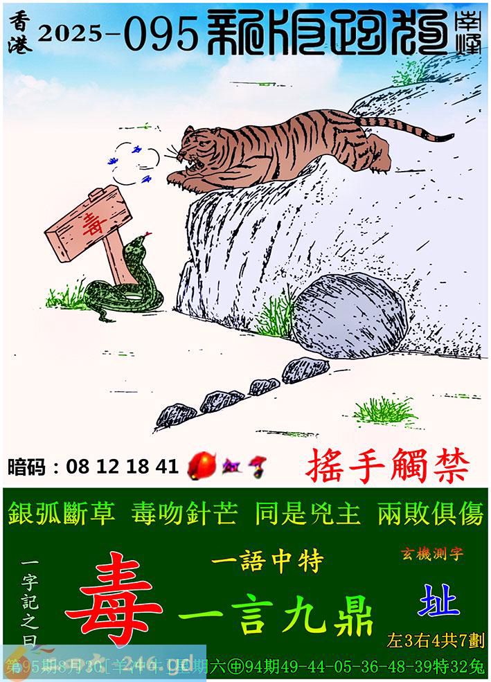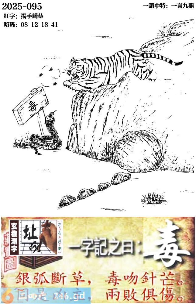095期跑狗一字記之曰:【毒】 銀弧斷草,毒吻針芒。 同是兇主,兩敗俱傷。