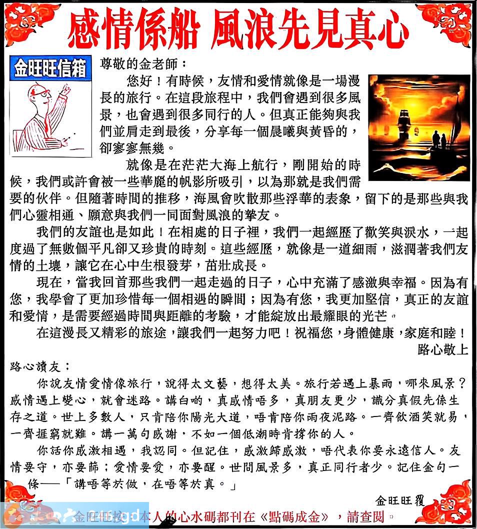 095期:金旺旺信箱彩民推荐→→《感情係船 風浪先見真心》