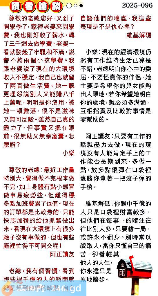 第零九六期讀者論談