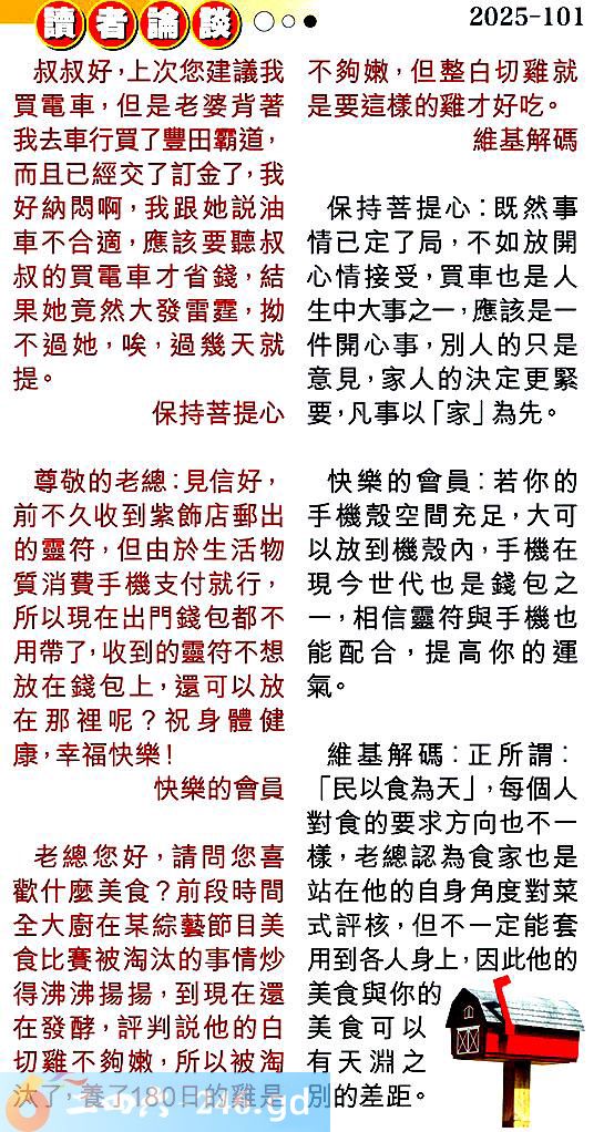 〖保持菩提心〗:既然事情已定了局,不如放開心情接受,買車也是人生中大事之,應該是一件開心事,別人的只是意見,家人的決定更緊要,凡事以「家」為先。