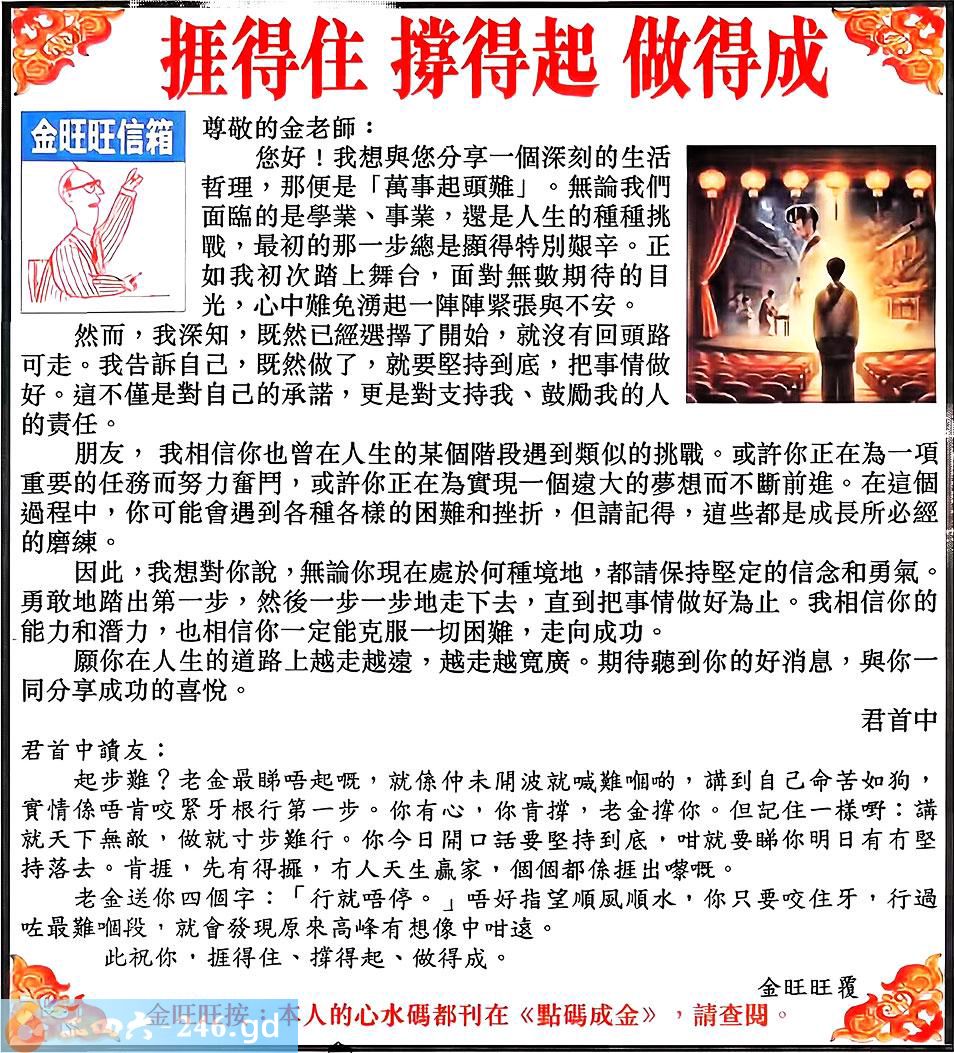 104期:金旺旺信箱彩民推荐→→《捱得起 撐得起 做得成》