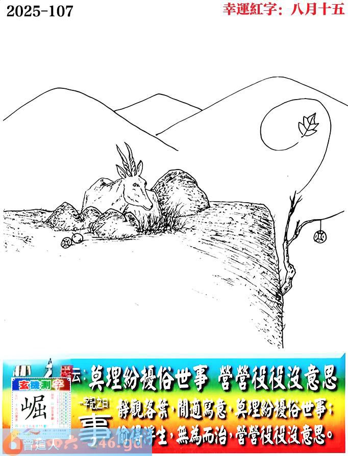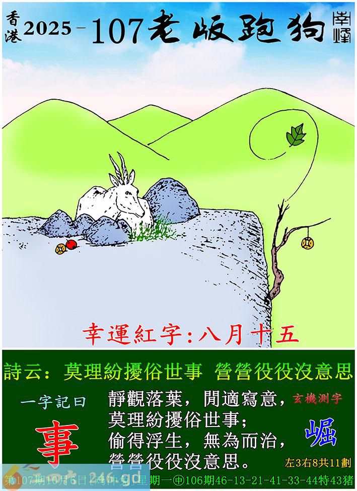 107期老版跑狗一字記之曰:【事】 詩雲:莫理紛擾俗世事,營營役役沒意思。