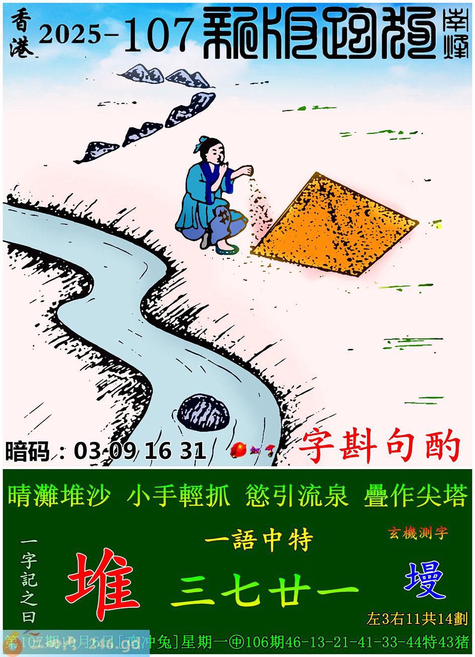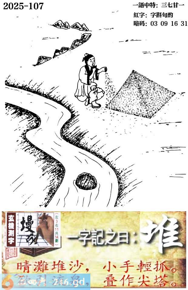 107期跑狗一字記之曰:【堆】 晴灘堆沙,小手輕抓。 慾引流泉,疊作尖塔。