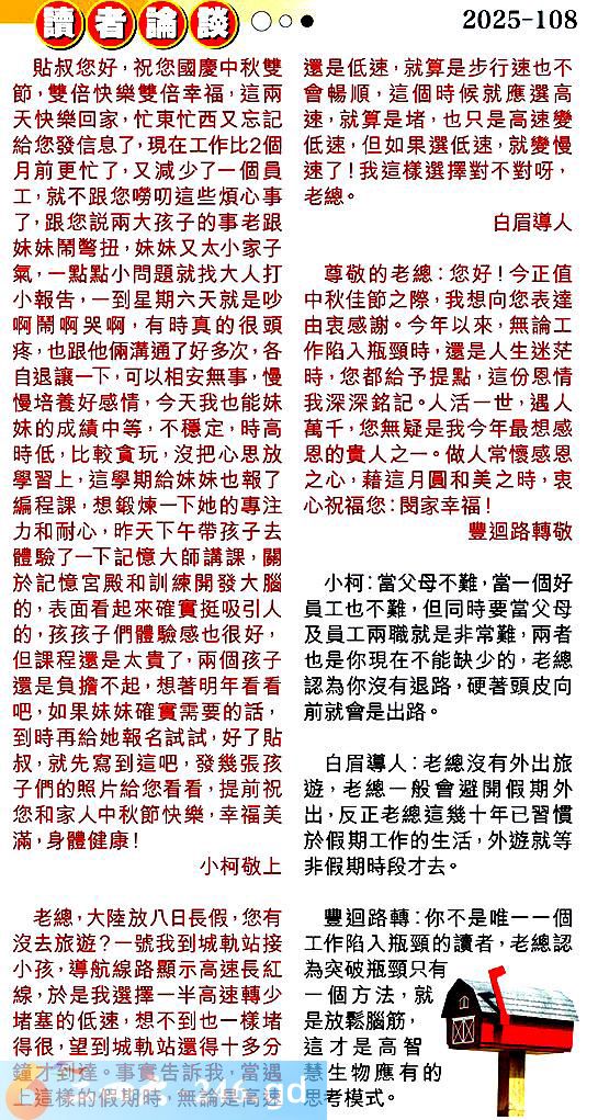 第一零八期讀者論談