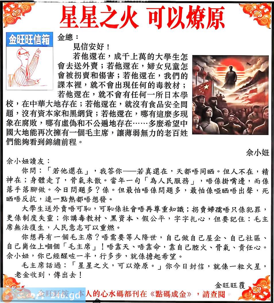 108期:金旺旺信箱彩民推荐→→《星星之火 可以燎原》