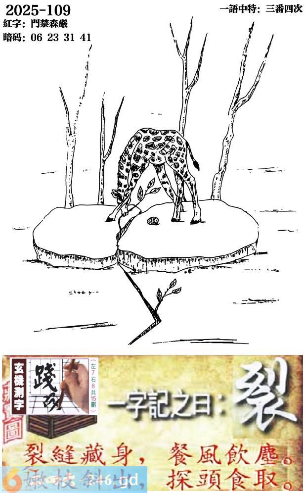 109期跑狗一字記之曰:【裂】 裂縫藏身,餐風飲塵。 嫩枝斜出,探頭食取。