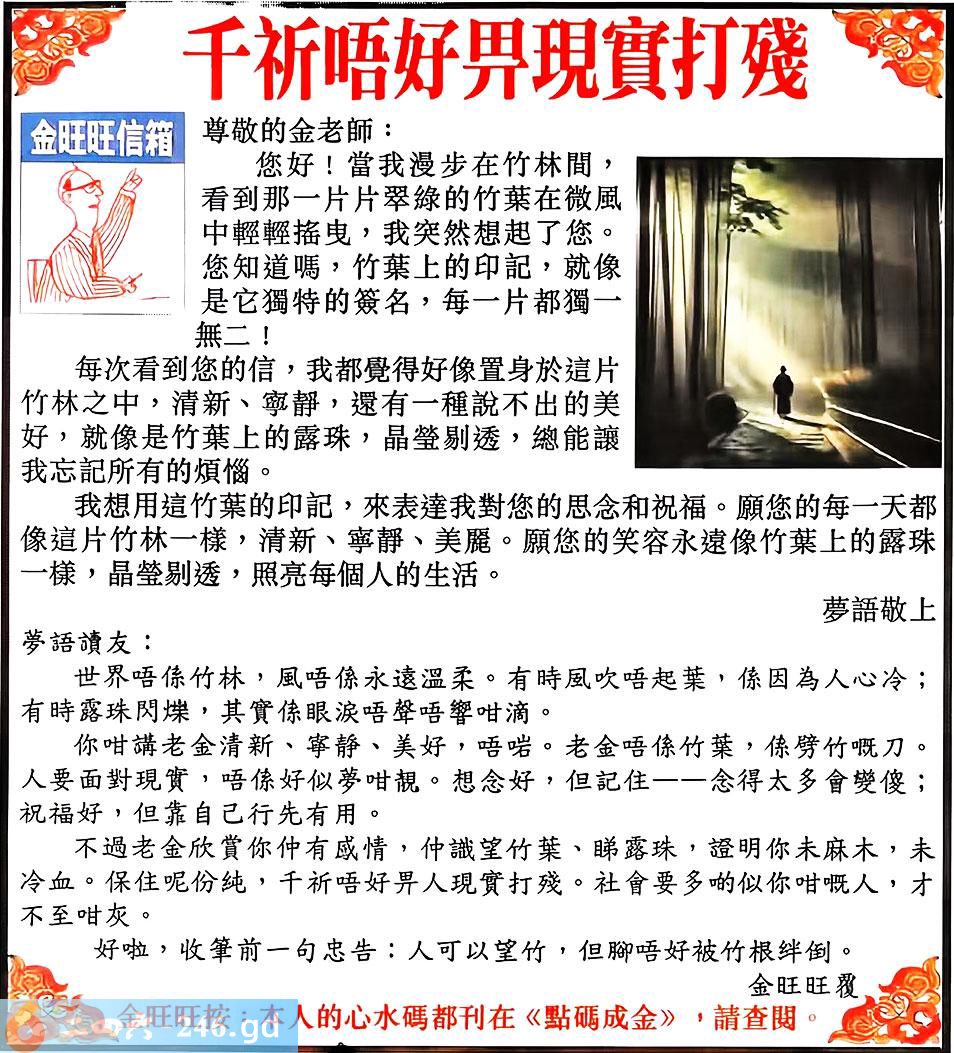 112期:金旺旺信箱彩民推荐→→《千祈唔好畀現實打殘》