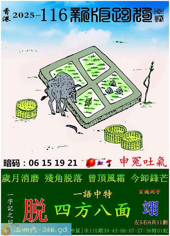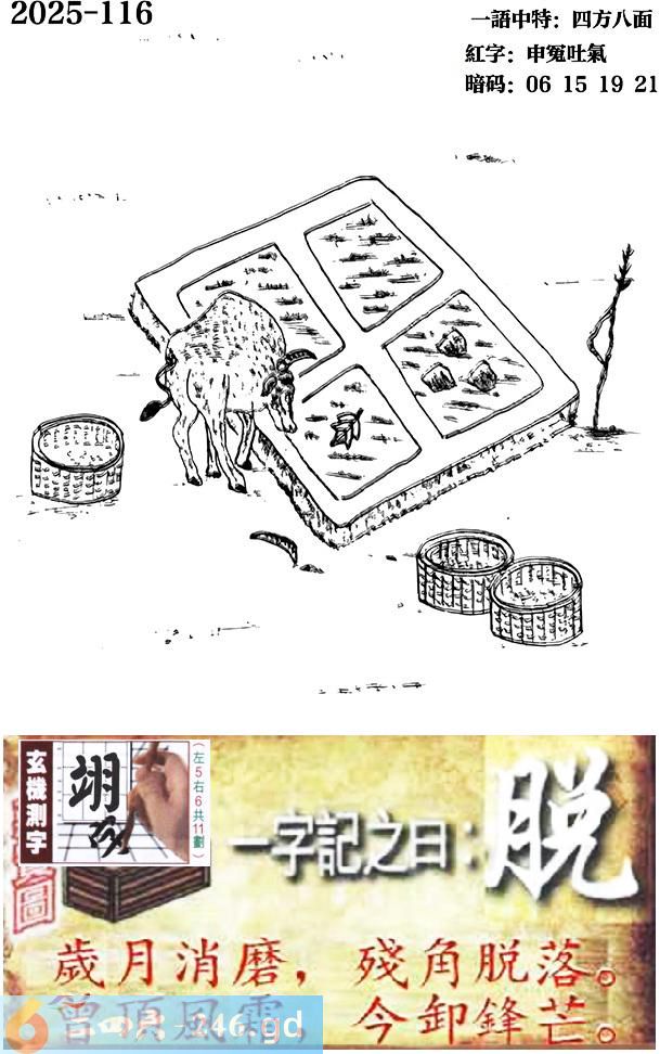 116期跑狗一字記之曰:【脱】 歲月消磨,殘角脱落。 曾頂風霜,今卸鋒芒。