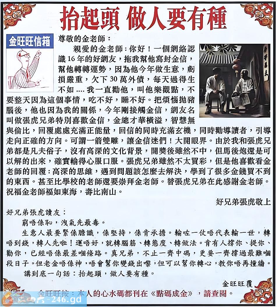 120期:金旺旺信箱彩民推荐→→《抬起頭 做人要有種》
